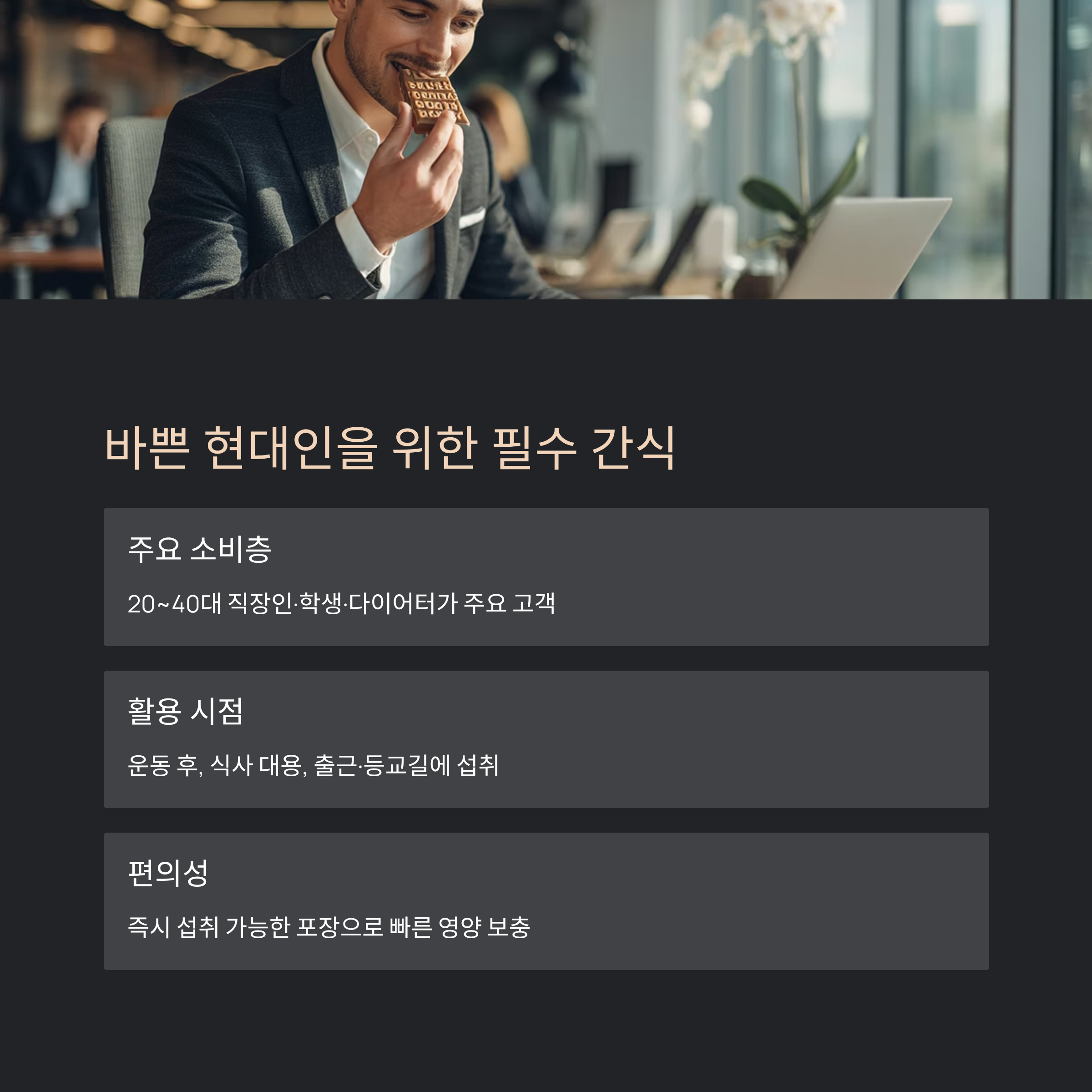 - 자신의 생활 패턴에 맞는 형태의 스낵 선택하기