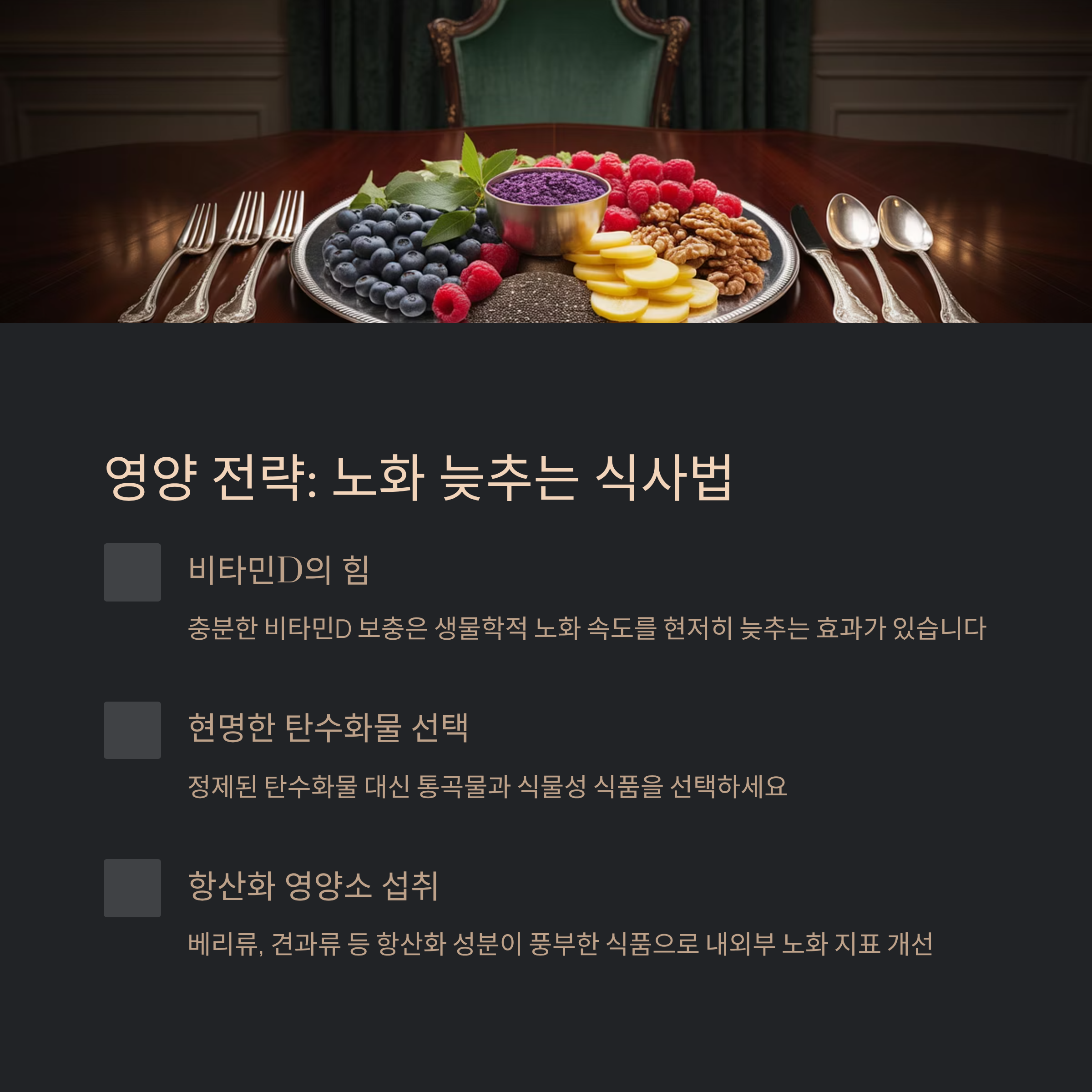 저속노화, 항산화식품, 비타민D, 피부항노화, 생활습관개선, 건강식단, 유전자편집, 운동습관, 수명연장, 건강관리