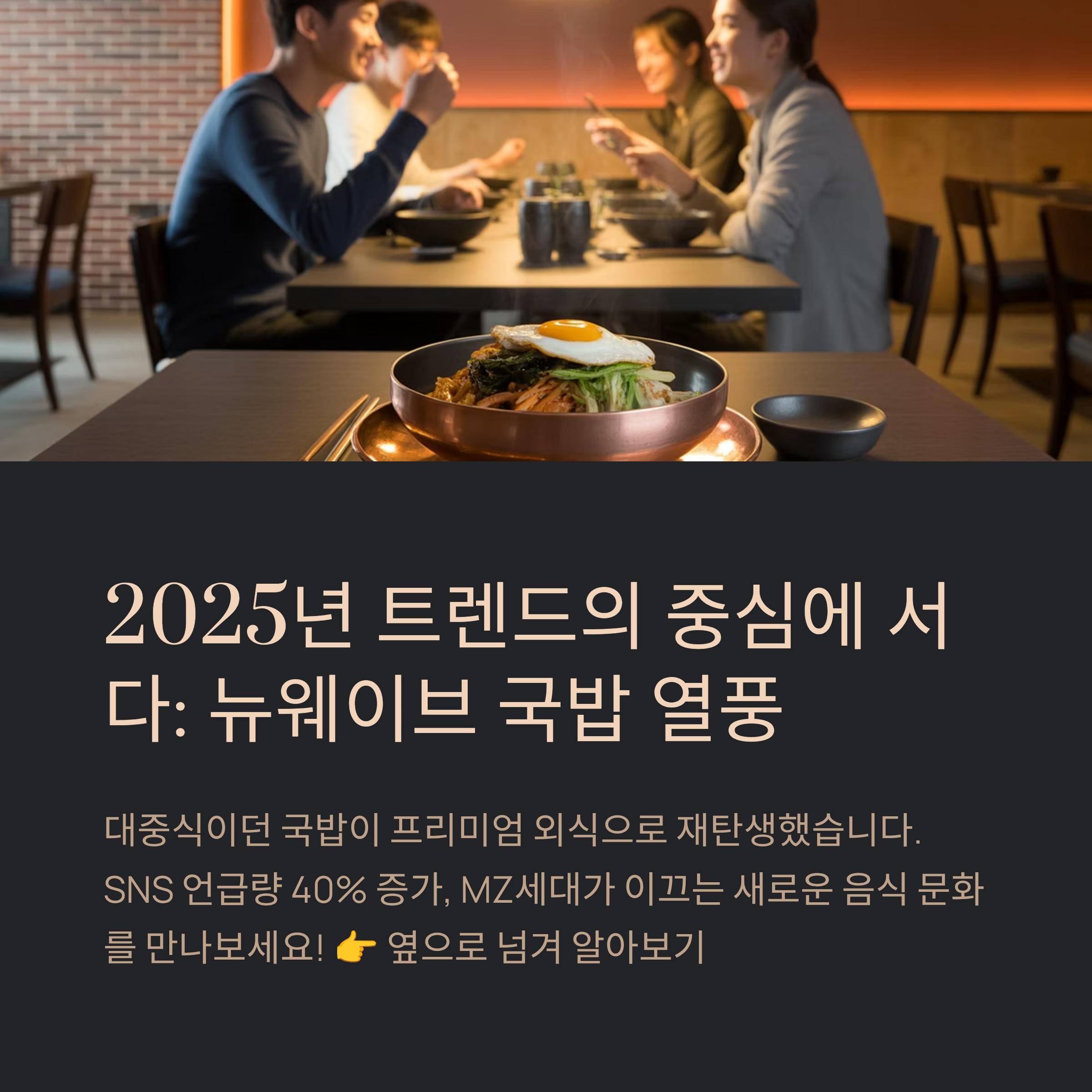 뉴웨이브 국밥의 인기는 단순한 전통적 국밥의 진화로 볼 수 있어요.