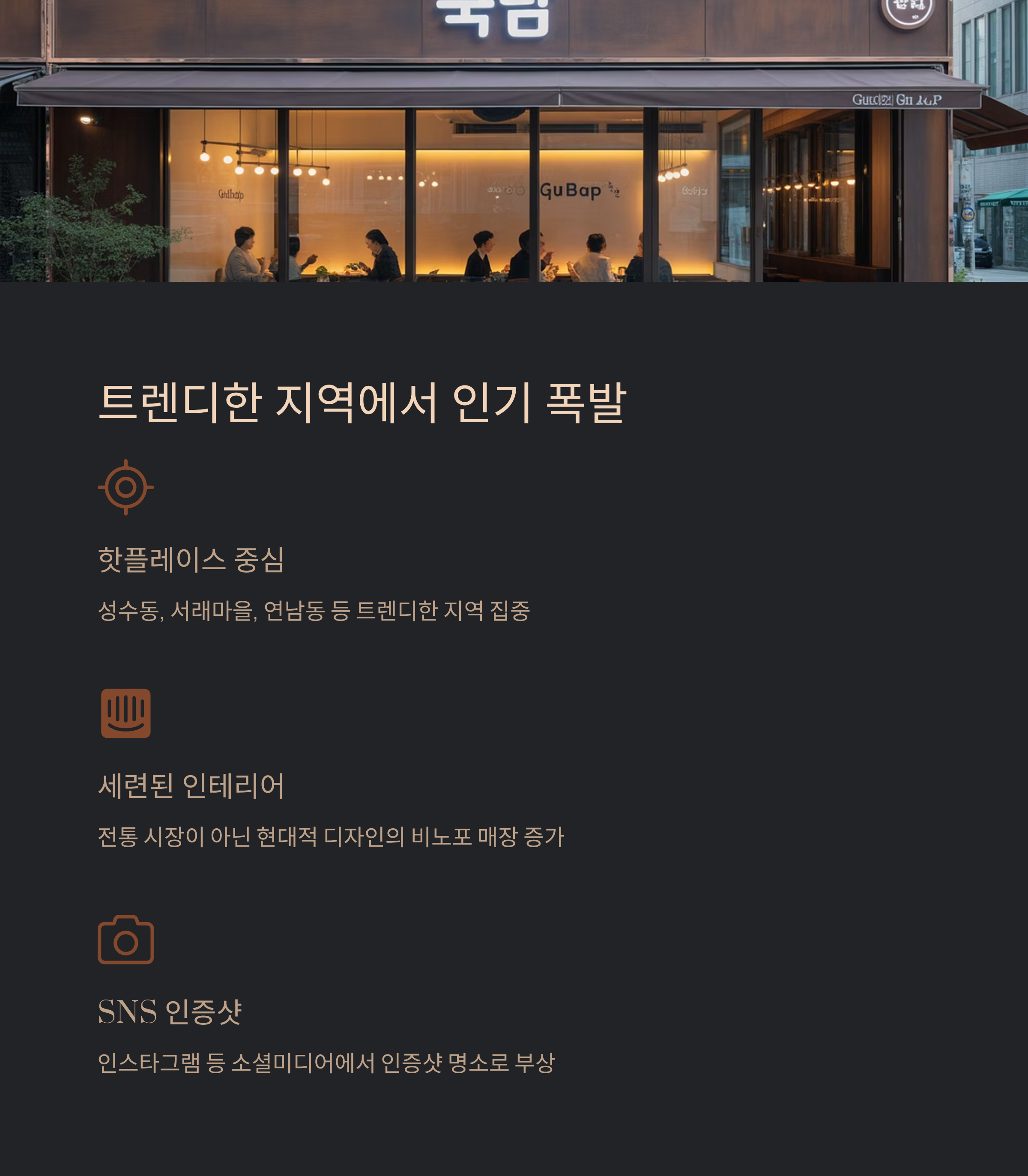 트렌디한 위치에 있는 국밥집에서 이런 변화들을 직접 느껴보세요. 🤔