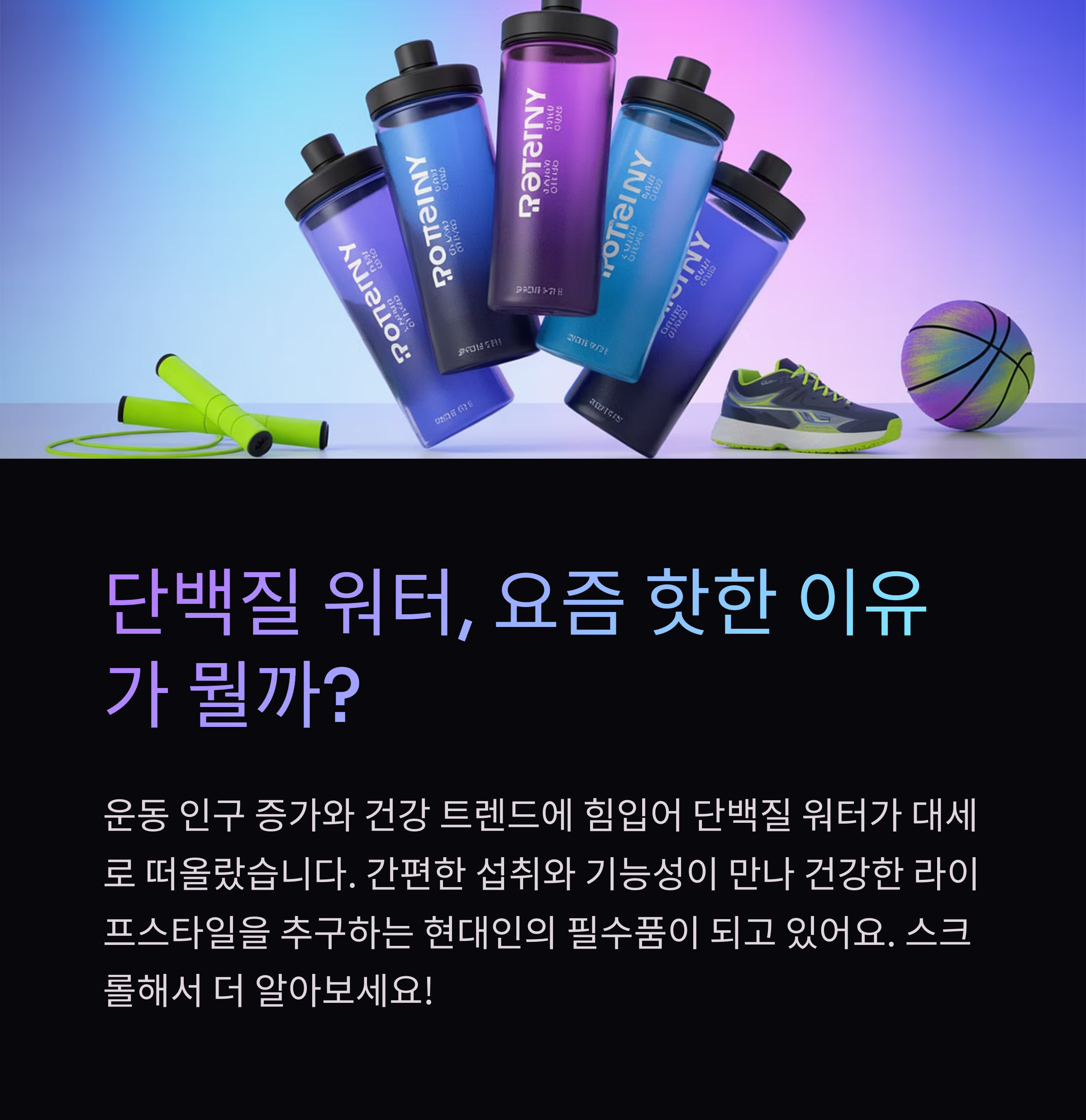 여러분, 안녕하세요? 오늘은 건강과 운동에 관심이 많은 언제나네님들을 위한 특별한 주제로 찾아왔습니다. 요즘 피트니스 열풍과 함께 단백질의 중요성이 더욱 강조되고 있는데요. 이에 따라 단백질 워터라는 새로운 선택지가 주목받고 있습니다. 다양한 종류와 맛, 그리고 건강을 위한 최적의 제품 선택법에 대해 알아보도록 하겠습니다.