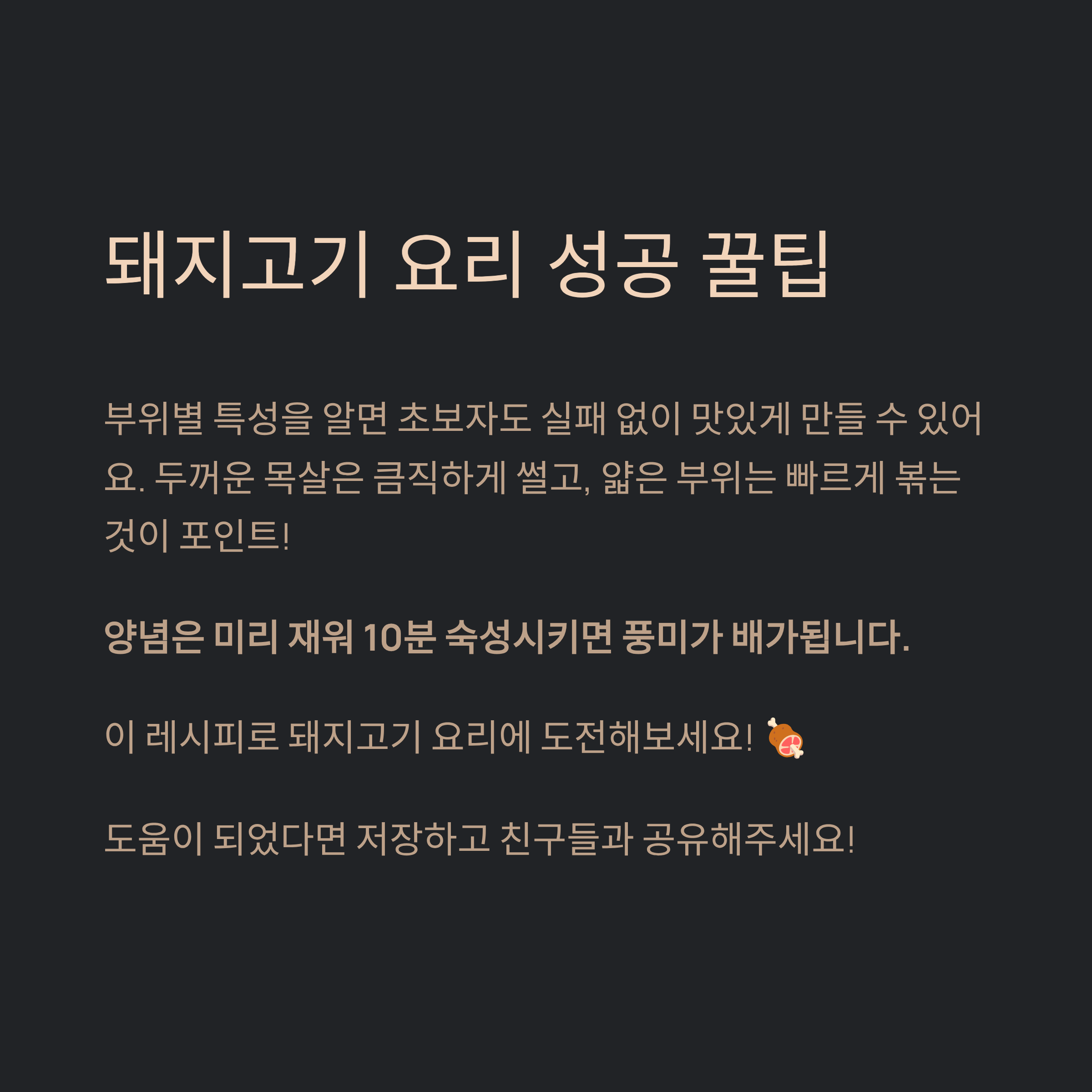 돼지고기 요리를 더 완벽하게 만들기 위한 몇 가지 팁을 소개할게요.😆 한 번 따라해보세요! 특히