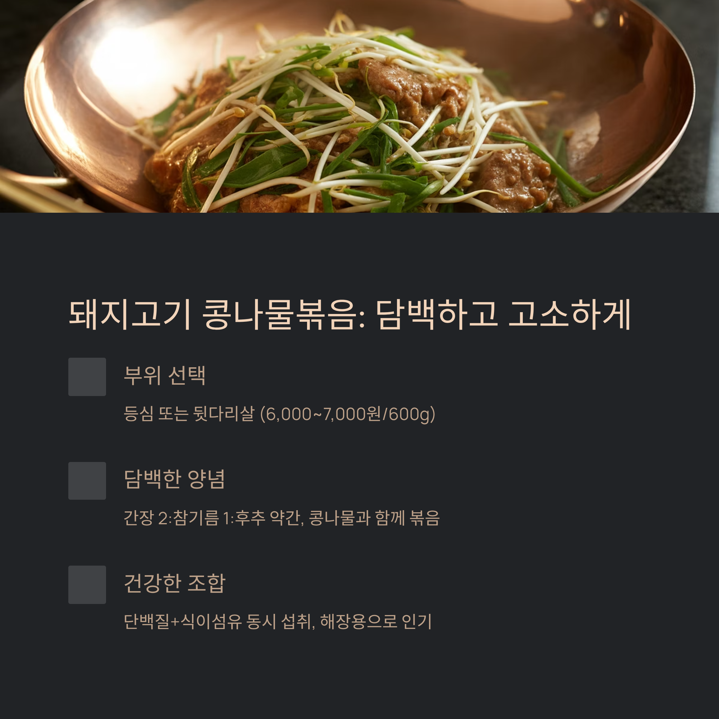 3. 돼지고기 콩나물볶음: 재료 최소, 영양 최적화 가정식