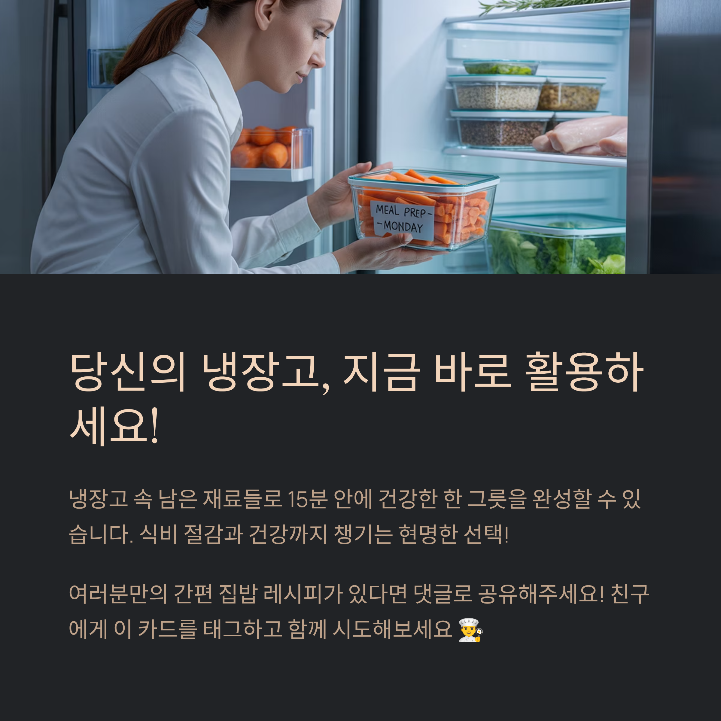 - 냉장고 속 재료를 확인하고 필요한 재료를 준비하세요.