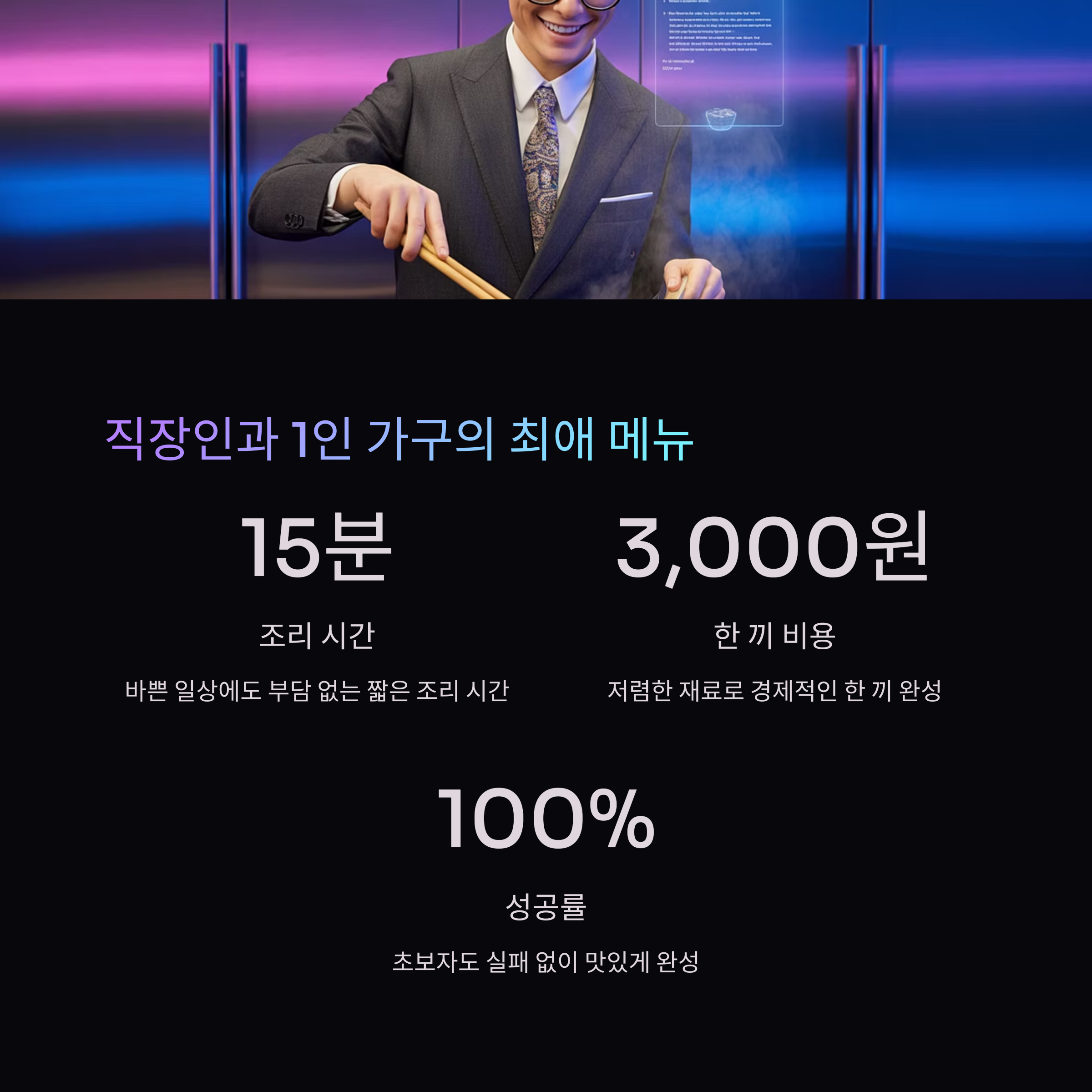 - 각종 채소와 소스들로 매번 다른 환경에 맞춘 요리 가능