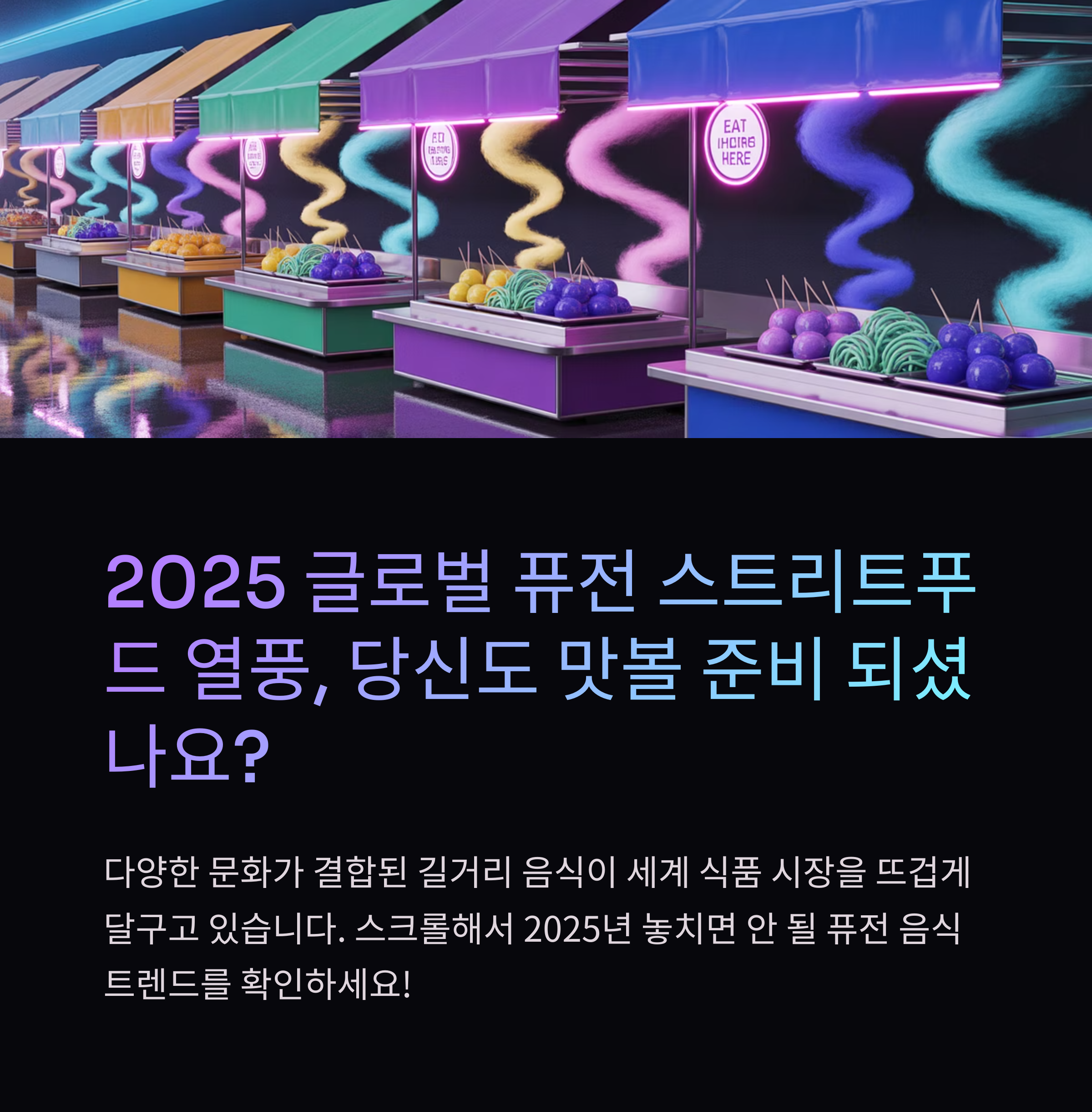 안녕하세요, 퓨전 스트리트푸드에 매료된 언제나네 입니다. 전 세계의 다양한 길거리 음식을 탐험하며 그 중에서도 글로벌 트렌드를 반영한 퓨전 스트리트푸드의 매력을 여러분과 공유하고 싶어요. 이 블로그에서는 2025년 기준 가장 인기있고 트렌디한 퓨전 메뉴들을 소개해 드리겠습니다. 매번 새롭게 변하는 미식 세계 속에서 여러분의 미각을 만족시킬 최고의 리스트를 기대하세요!