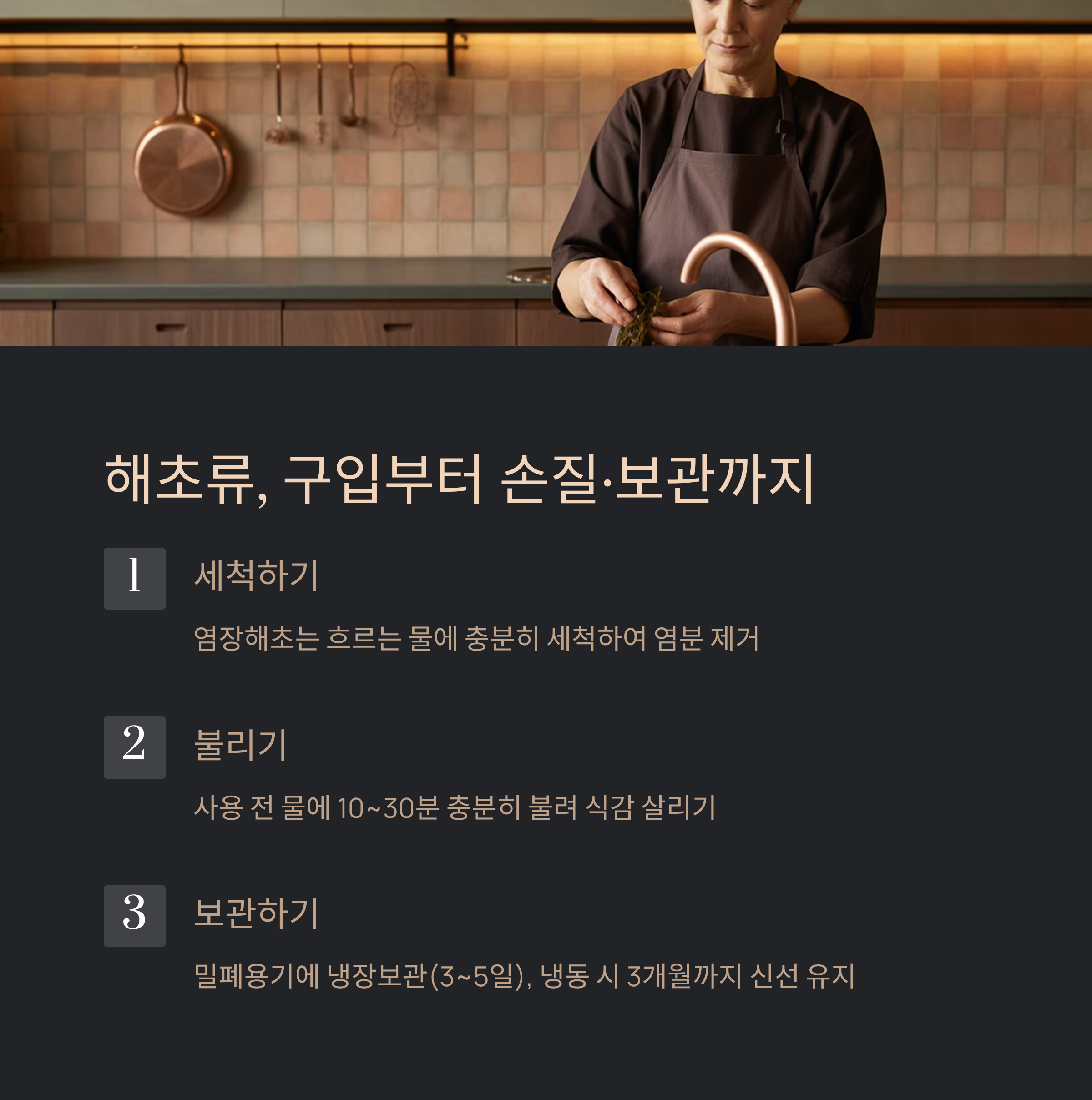 염장 해초류는 염분을 제거하기 위해 여러 번 씻어야 하죠. 자주 접해보지 않았다면, 멀게만 느껴질 수 있지만,