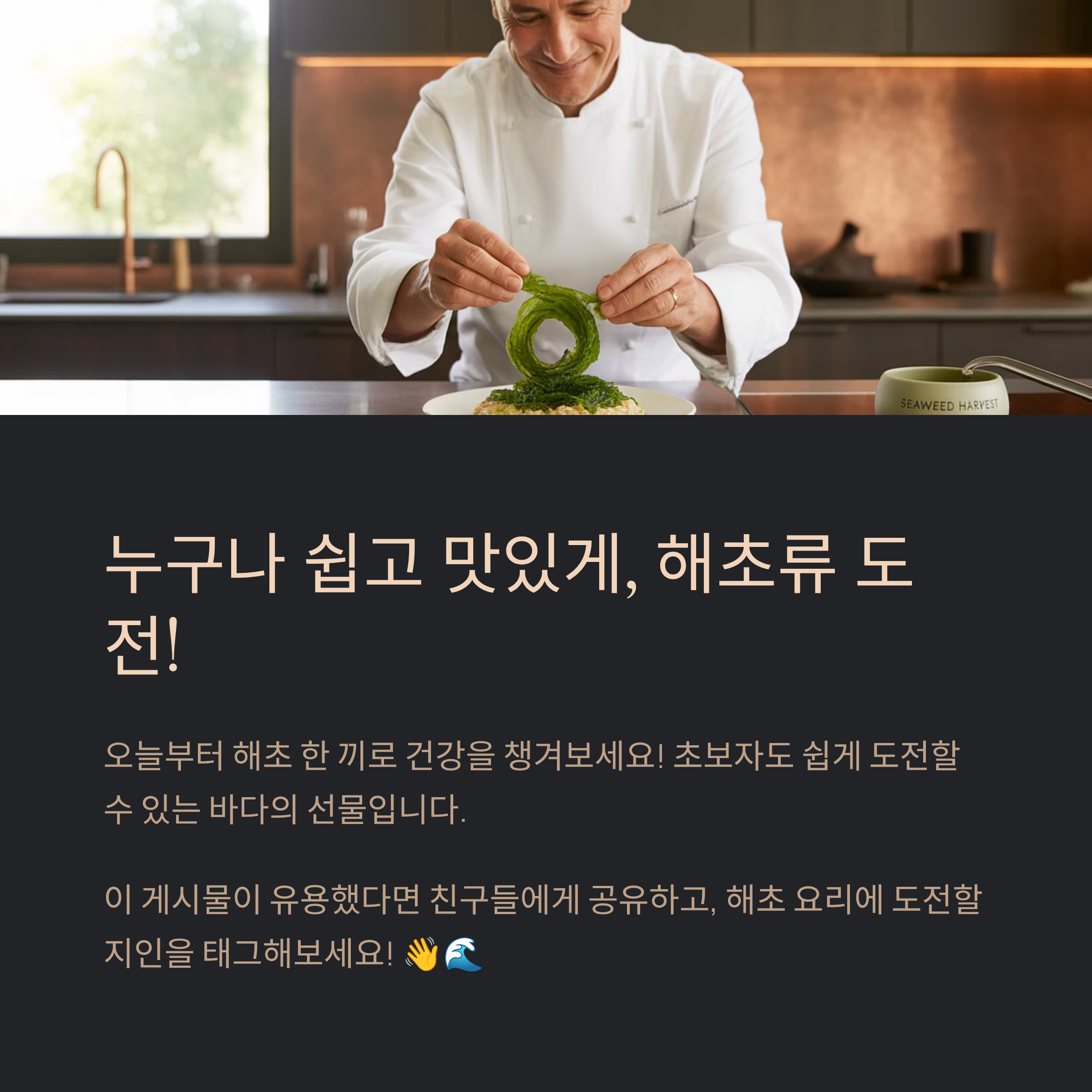 특히 해초류는 건강에도 이롭고 다양한 요리에 적용할 수 있으니, 꼭 시도해보세요. 💪 이제 해초 요리의 매력을 경험할 준비가 되셨나요?
