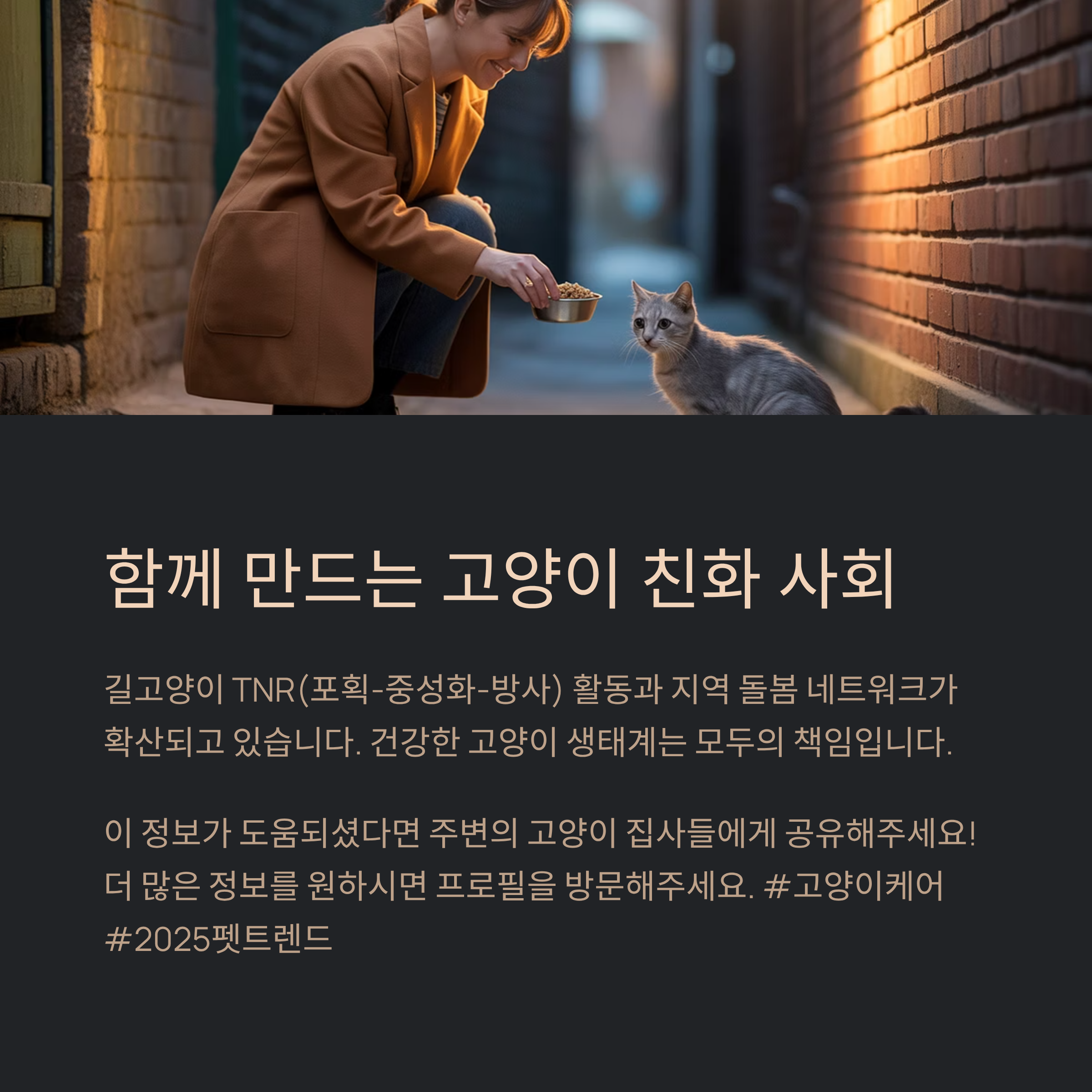 안녕하세요, 고양이 돌봄에 관심 있는 모든 분들께 인사드립니다! 냄비는내친구님들처럼 고양이를 처음 돌보는 집사분들께 이 디지털 시대에 꼭 필요한 돌봄 비법을 공개합니다. 최신 기술과 데이터를 결합해 편리하게 고양이의 건강과 행복을 함께 관리할 수 있는 다양한 방법을 소개할 예정입니다. 놓치지 말고 함께해 주세요!