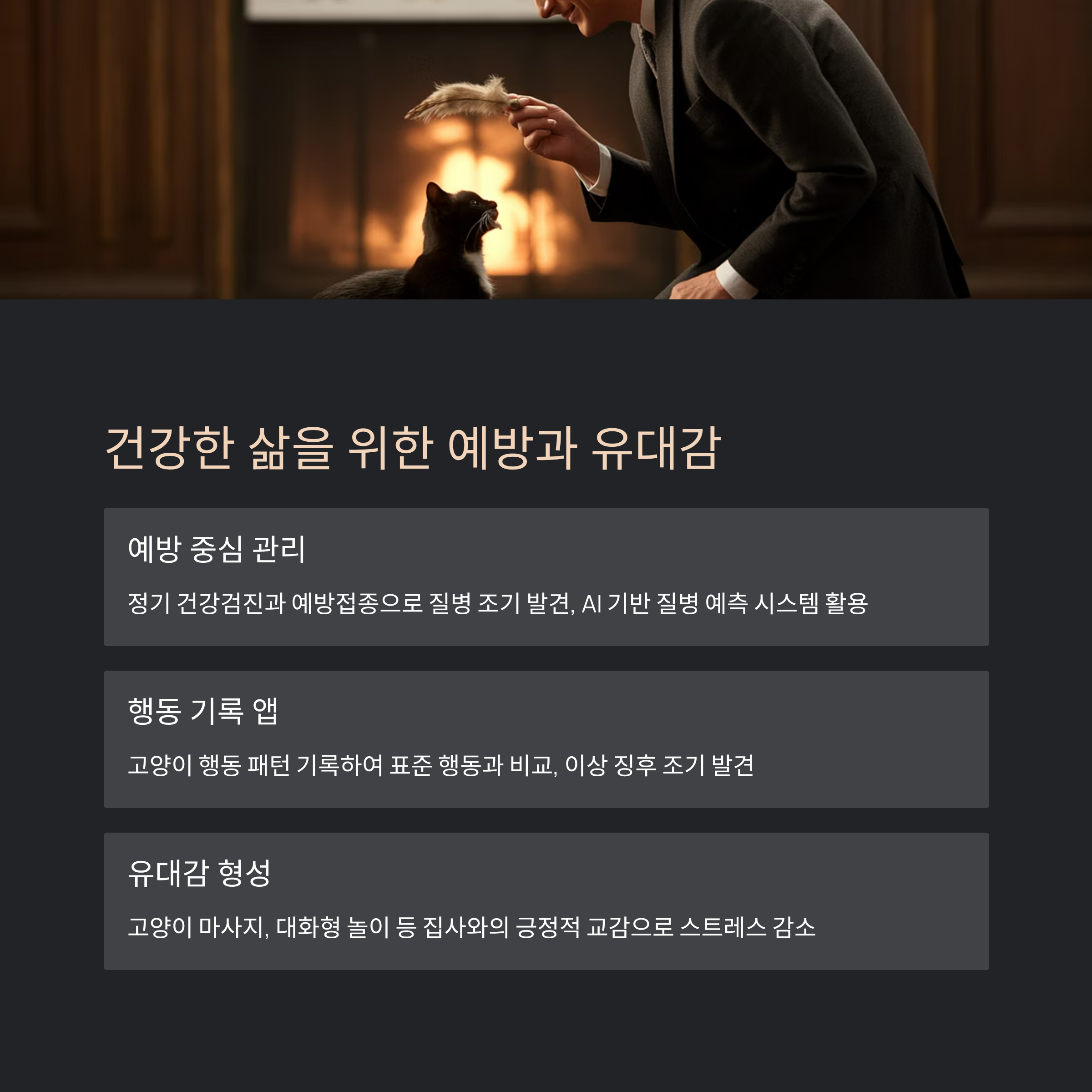 고양이와의 유대를 강화하는 것은 집사로서의 중요한 역할입니다. 이 디지털 시대에는 서로의 정서적인 안정과 관계 발전을 위해 더욱 다양한 방법을 시도할 수 있어요. 고양이는 보호자의 피드백에 민감하게 반응하며, 이런 순간들이 둘 간의 관계에 큰 영향을 미치기도 합니다.💡 본격적으로 고양이의 심리적 웰빙을 도모하기 위해 실생활에서 적용할 수 있는 몇 가지 유용한 목록을 준비했습니다.