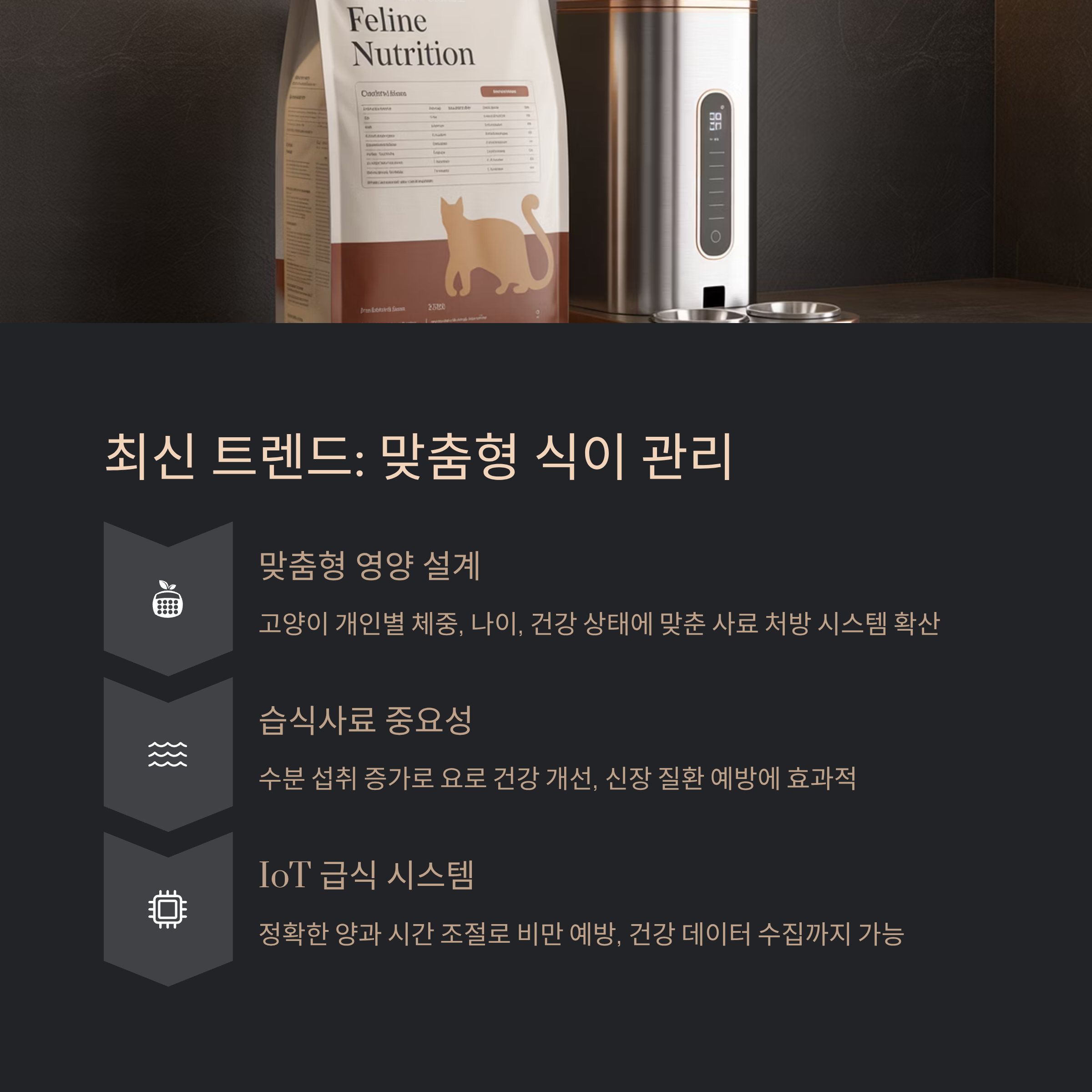 | 자동 물 급여기 | 물 소비량 추적 | 수분 섭취량 관리 용이 |