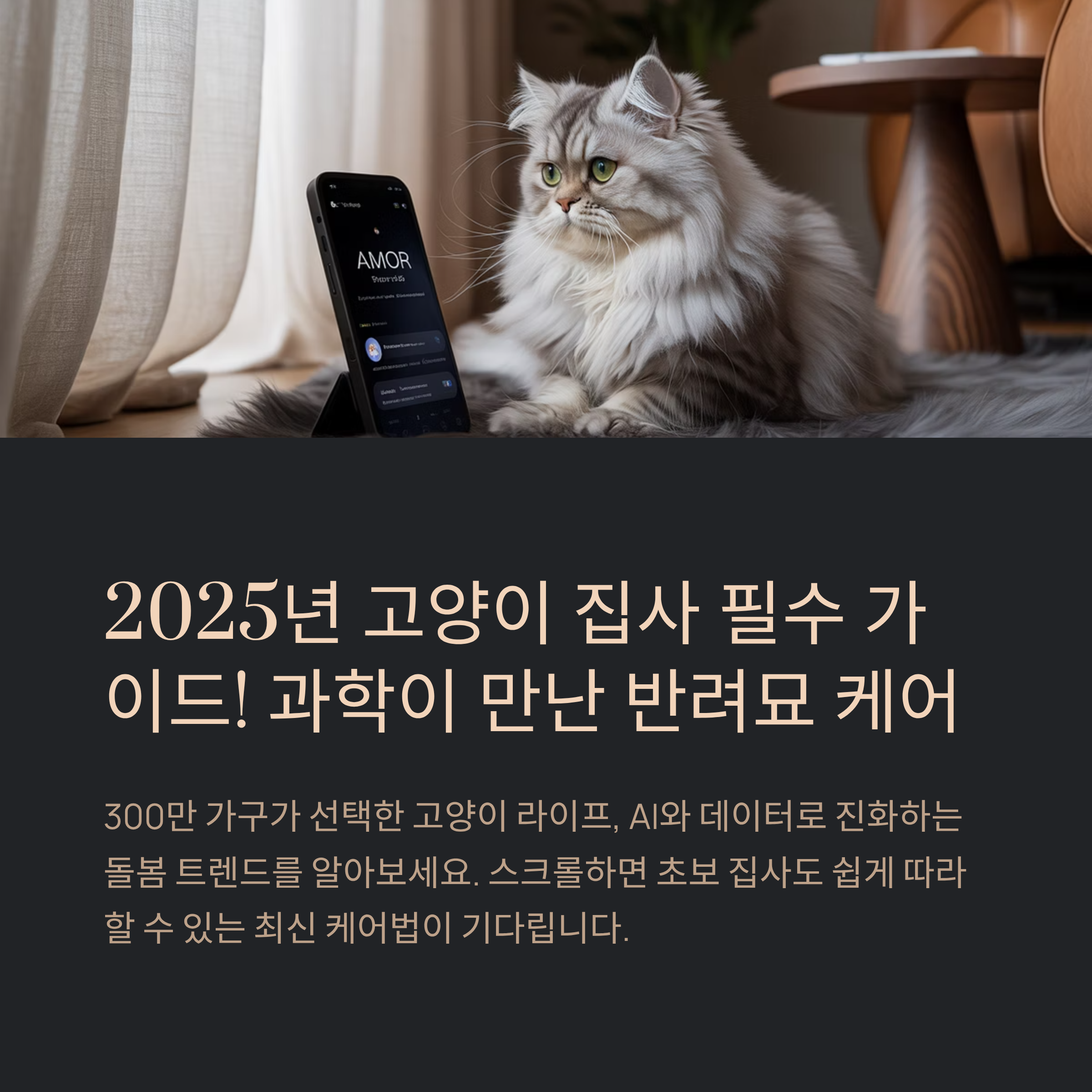 고양이 돌봄은 사랑과 노력이 필요한 여정입니다. 위에서 소개한 최신 돌봄 비법을 통해 고양이와 집사의 삶의 질을 높일 수 있습니다. 정기적인 건강 검진과 데이터를 기반으로 한 맞춤 관리가 필요하고, 질병 예방 및 조기 대응을 통해 고양이의 건강을 지킬 수 있어요. 또한, 고양이와의 긍정적인 관계 유지는 끝없는 노력과 관심을 통해 이루어지는 것이죠. 이 모든 것이 복합적으로 작용해 고양이의 행복한 삶을 만듭니다. 고양이가 보내주는 소중한 순간들을 더욱더 소중히 여기며, 여정의 동반자로서 서로에게 든든한 존재가 되기를 바라며 아래의 행동을 실행해 보세요.