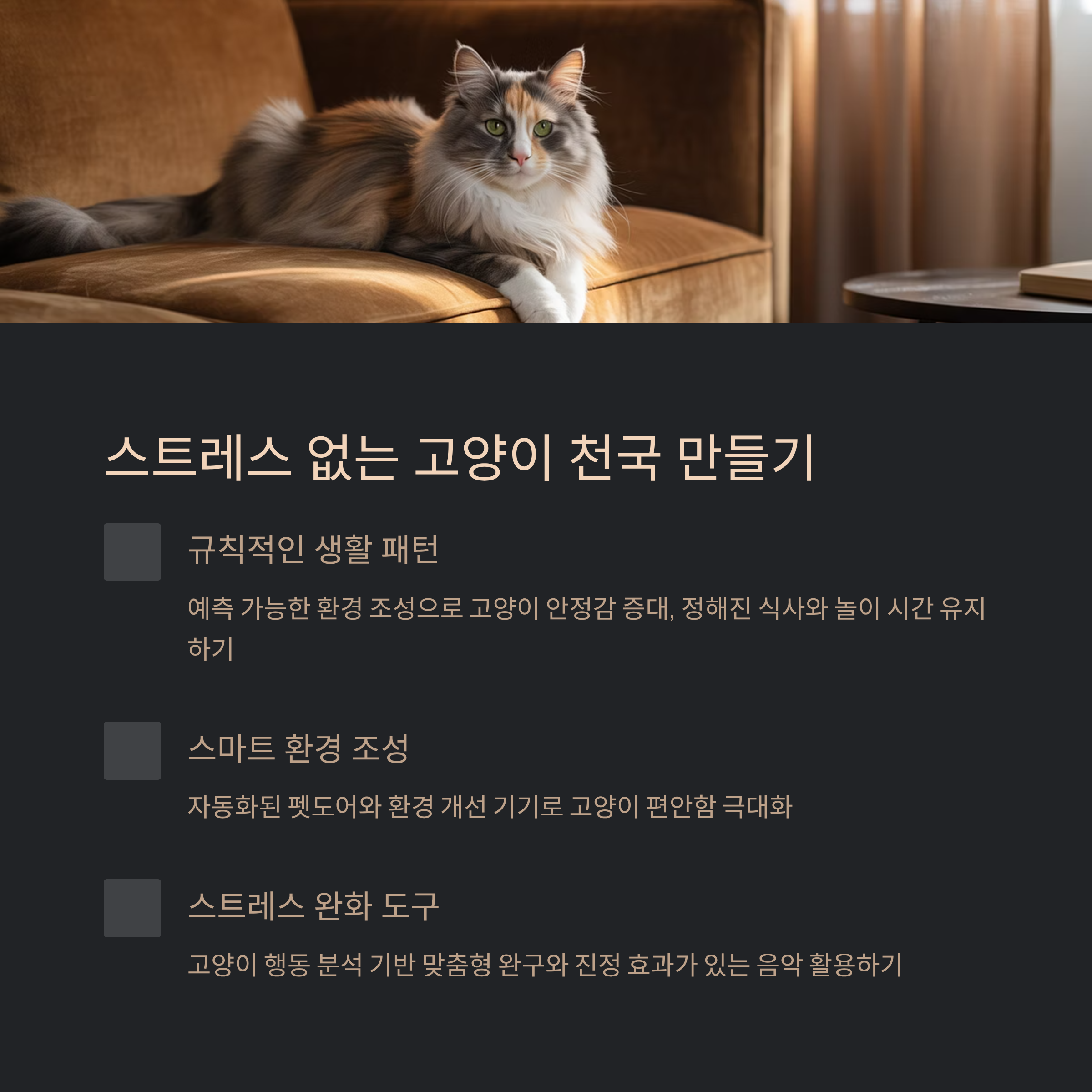 - 고양이와 일관된 루틴을 유지하며 안전한 환경 제공
